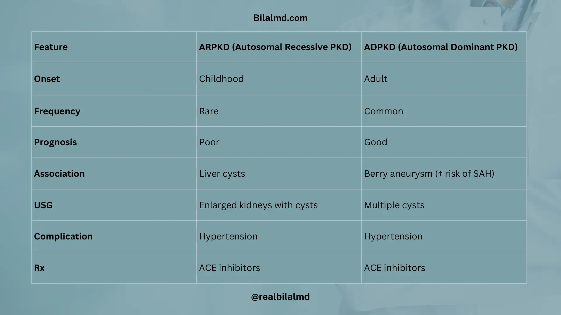 | Feature | ARPKD | ADPKD |